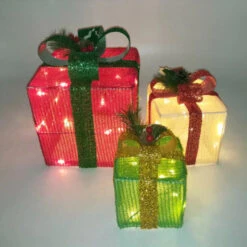 3D LED Lighted Twinkling Gift Box Set Motif – Christmas Presents – Multi-Color