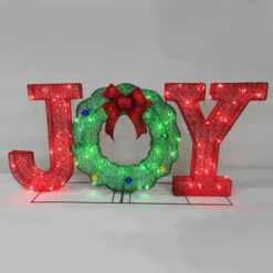 3D LED Lighted Joy With Christmas Wreath Motif – Red And Green – 51 Inch