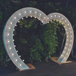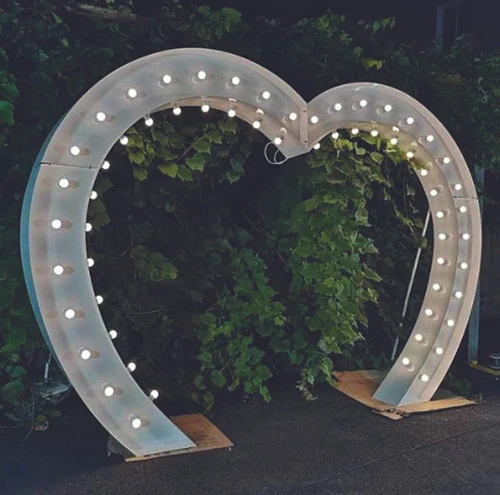 Is your wedding coming up or are you planning for it or an anniversary? Then this is the perfect heart stand to have as your backdrop at your event. This heart wedding arch is built from solid metal plate and stands 7.8’ tall by 12’ wide. These can be powder coated in over 600 different colors and they use RGB turbo bulbs. These can also be built to handle outdoor weather conditions. If you want a simplistic look with a huge impact that will be beautiful in the sunlight and also light up the night then this is the one for you.