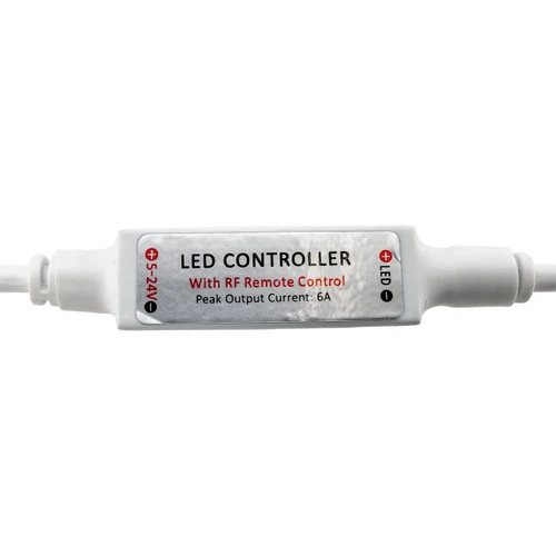 This radio frequency remote control dimmer allows you to adjust the brightness of your 12 or 24 volt LED strip lights or other low voltage lighting. It also has adjustable speed, pre-programmed effects that will allow your strip lights to fade or flash.