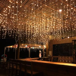 Bring a dash of glitz and glam and create a festive atmosphere for a special event, by livening up your party space with our incandescent commercial wall light curtains. Their commercial grade, heavy-duty construction and sealed screw on connectors are rated to use inside and out making them a perfect lightning accent for outdoor holiday decorating – wrap them around a gazebo, weave them in tree branches, drape over walls, hedges and flowering shrubs, or outdoor wedding venues for a lovely party effect. These versatile wall curtain lights can have up to 5 sets connected end-to-end and if any bulbs burn out each drop can be easily fixed by using our easy to attach replacement light drops.