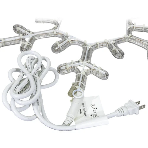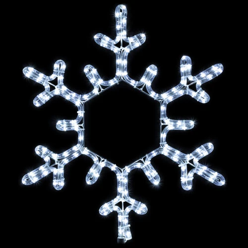Our 18 inch by 18 inch snowflake motif is a great choice for your winter display. This bright white motif is built on a powder coated frame and with UV enhanced LED rope light so it can withstand the elements.