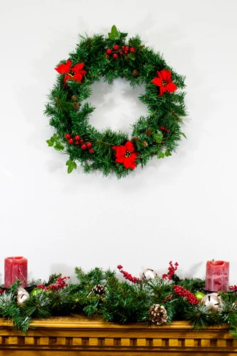 Embrace the festive season with our 20-inch Christmas Wreath with Poinsettias. Perfect for decorating your home or business this Christmas holiday, the wreath features three velvet poinsettia flowers and a hook for easy hanging. Adorn your Christmas tree, front door, office, or commercial space with this festive accessory.