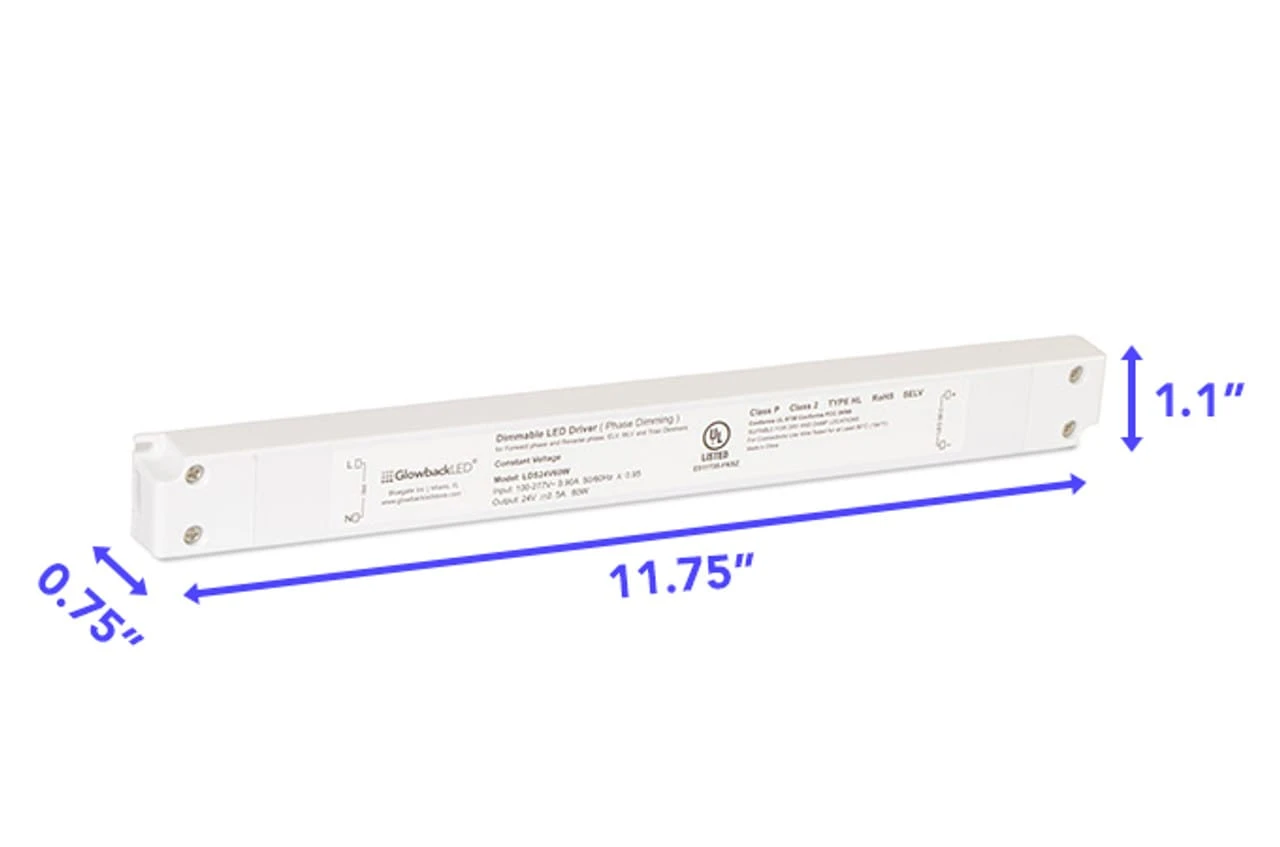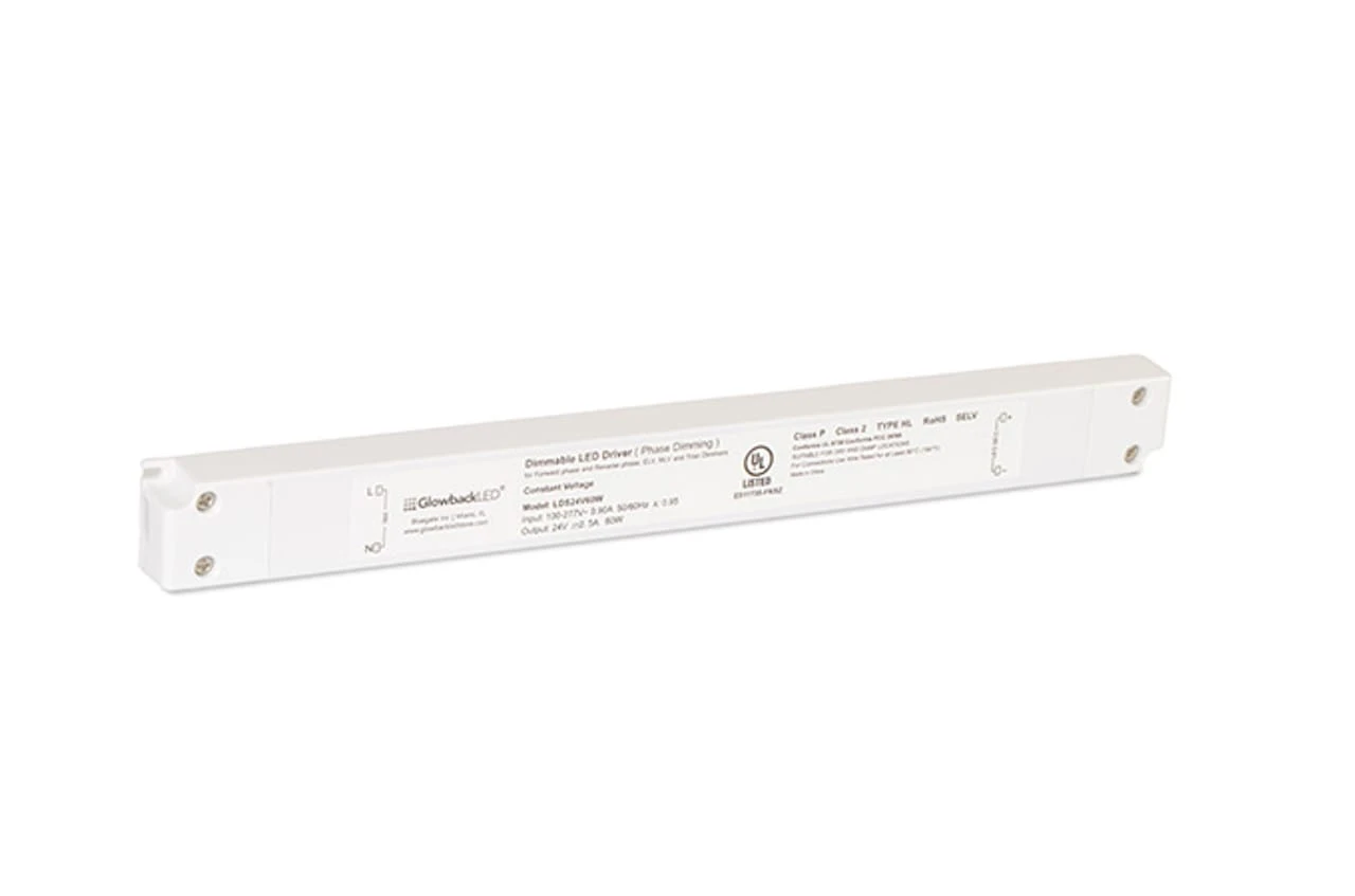 Manufactured exclusively for GlowbackLED, Our new LDS24V60W is a Slim Linear 24V 60W Dimmable LED Power Supply suitable for a wide range of LED strip and linear lighting products. Our LDS24V60W can be used with any phase control dimmers (Forward Phase (Triac/MLV) and Reverse Phase (ELV). Unlike our older dimmable LED power supplies our LDS24V60W outputs consistent, flicker-free lighting which can be smoothly dimmed down to 1%. This Dimmable LED Driver features an integrated wiring compartment, allowing one to make clean connections inside of the power-supply with no need for external junction boxes. This slim, linear design makes our LDS24V60W an excellent solution for powering our inside of our , which has a dedicated slot for housing an LED power supply. The slim linear form factor also makes it a more compact solution for applications with limited space.