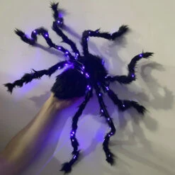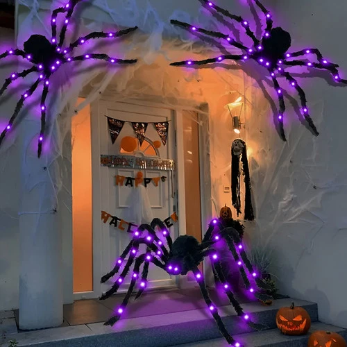 But what truly sets this spider apart is its mesmerizing, radiant purple LEDs. These enchanting lights cast a creepy glow, turning any environment into a hauntingly beautiful spectacle. Whether perched in your front yard, lurking in your living room, or creeping through your Halloween display, this spider’s piercing purple eyes will leave an unforgettable impression on all who dare to approach.