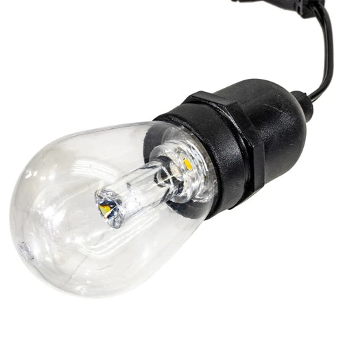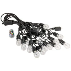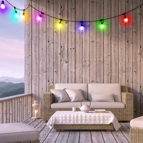 Bistro and patio lighting has become one of the hottest trends for LED lighting and Brilliant brand RGB+W bistro lights are a great way to add ambient light and festive effects to any outdoor area. Each set includes 15 RGB+WW bulbs that can easily switch between cozy warm white or your choice of 11 static colors as well as multiple color changing effects.