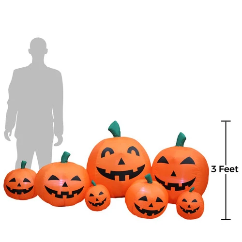 Why settle for just one light-up jack-o-lantern on your front lawn? This ElectricArt 7-Piece Pumpkin Family LED Inflatable emphasizes the fun side of Halloween. Anyone who comes to trick-or-treat will be welcomed by two jack-o-lantern parents and their five smiling kids. Each one contains LED lights for after the sun goes down. Create a custom Halloween light display with our Jack-o-Lantern Pumpkin Family LED Inflatable Set at an unbeatable price.