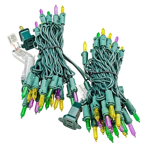 The M5 style Mardi Gras string lights effortlessly infuse festive charm and vibrant energy into any space, creating a lively atmosphere reminiscent of the iconic celebration. Featuring a dynamic array of colors inspired by the lively spirit of Mardi Gras, these string lights showcase a dazzling spectacle of purples, greens, and golds that captivate and elevate any event or space. The M5 bulb design, with its distinctive traditional shape, adds a touch of classic elegance to the festivities. Drape across ceilings, wrap around columns, or hang along fences and let your spirit shine bright. Whether decorating for a Mardi Gras party, carnival-themed event, or simply adding a burst of color to any occasion, these Mardi Gras string lights are a captivating and versatile choice that transforms any space into a visually stunning celebration.