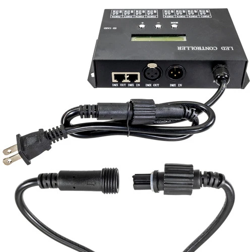 For maximum wow factor this PLC Main Controller is a must. Connect and dynamically sync up to 8 different PLC products. Create a custom matrix using PLC net lights, PLC Rope Lights, or PLC icicle lights, that all work together as single dynamic unit. The Main PLC controller must be paired with 2 or more (up to 8) Dynamic Chasing RGB PLC Dependent Controllers. Includes SD card with pre-loaded programs. Can be custom programmed by the end user with the relevant software.