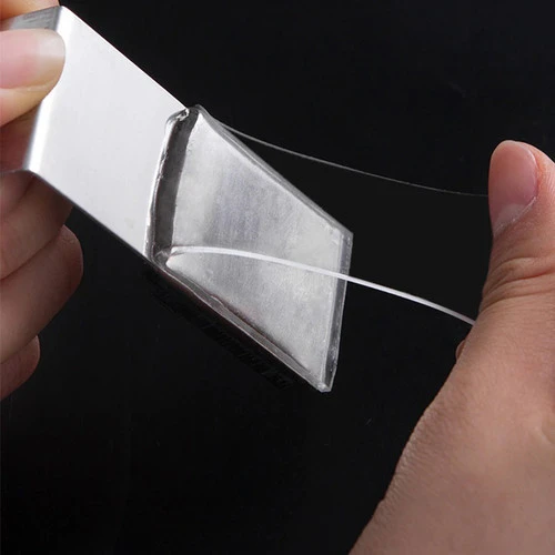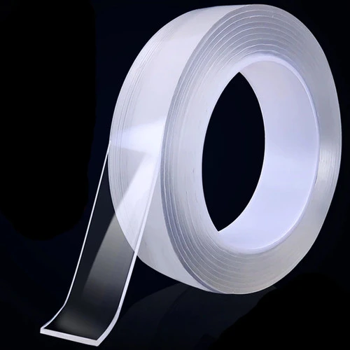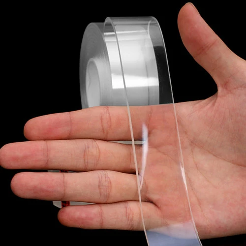 This heavy-duty tape is clear and waterproof. Leaves no residue behind and can be used indoors or outside. It can also be cleaned and reused again.