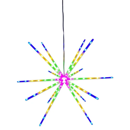 This Firework Light light is white when in the off position but with a push of a button it becomes a multi-color light display. It is made of hard plastic to help keep its form but breaks down easily when you want to store it away. You can activate it using the push button directly on the controller or use the handy remote included. There are 8 pre-programmed functions with different effects and a steady-on option. Use it for decorating indoors or out, and at all sorts of events, or even for the holidays such as 4th of July parties. Comes with a cord and hook that it hangs by. Plus, it’s battery powered so no need to have to find somewhere to plug it in.