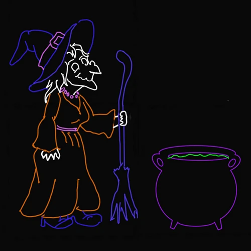 Introducing the captivating Mystical Witch and Cauldron Neon Rope Light Sculpture – a bewitching addition to your decor that will cast a spell of enchantment over any space. Standing at an impressive 6 feet in height and 8 feet in width, this artistic masterpiece captures the essence of Halloween magic like never before.