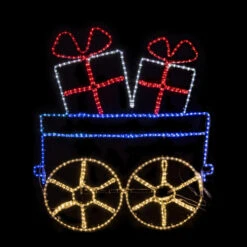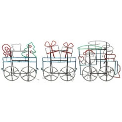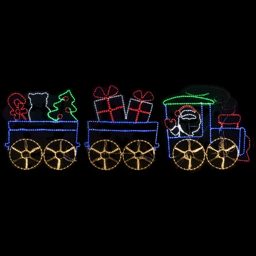 Add some extra Christmas cheer and excitement to your holiday decorations that holiday guests, neighbors and passersby will enjoy with our animated LED Santa Train light motif! Now with moving wheels and smoke coming out of the stack, this three panel display is built to work indoors or outdoors, and the animation speed can be controlled with the included controller.