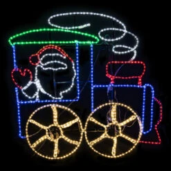 Your holidays will chug along with our Christmas LED Santa Train light motif! This three panel display will add a fun touch to your Christmas lights. Built so they can work outdoors, the Santa Train light motif will light up your yard and impress your neighbors!