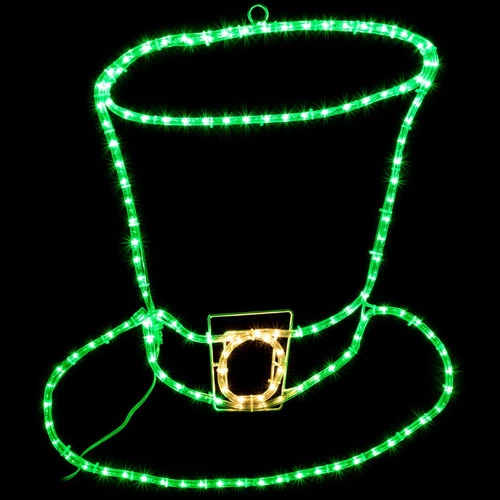 Looking for the perfect thing to brighten up your St. Patty’s day vibes? This LED Leprechaun Hat motif is the thing for you! Bright 120v LEDs and a sturdy metal frame, this motif is sure to bring life to the party!