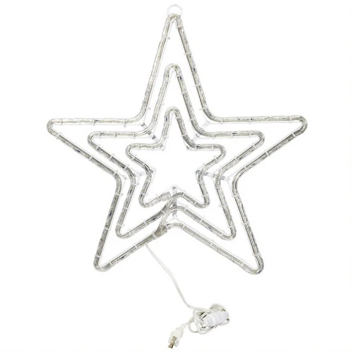 Outshine your neighbors with our Red, White and Blue Star motif! Looking for a little pizzazz to add to your holiday barbeque? This indoor/outdoor star is the perfect addition, and comes on a sturdy white coated aluminum frame and easy mounting hooks!