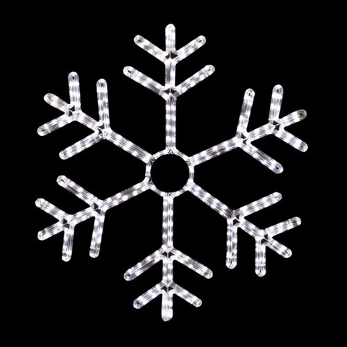 Light up your home or yard with our cool white LED snowflake motif and show off your Christmas spirit! Just like all of our snowflake motifs, this 27 inch by 27 inch LED snowflake is made on an all-weather frame with UV protected rope lights.