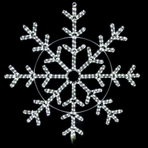 If you are seeking a bright motif to add to your Christmas display this year, try out our cool white LED snowflake motif. The cool white snowflake motif is compatible for both indoor and outdoor use and is built on an all-weather steel frame with UV enhanced LED ropelights.