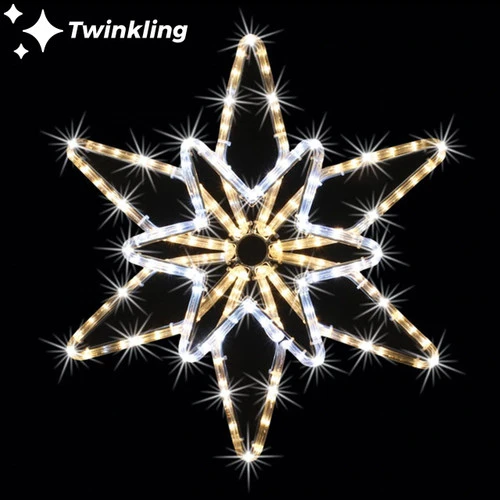 Level up your decorations this year with our carefully detailed shining star motif. The fun pattern within the star give this decoration dimension you can’t take your eyes off of. The contrast of warm white and cool white rope lights set on an aluminum frame makes the perfect decoration this holiday season or all year round. You can install this motif indoors or outdoors depending on your preference. Imagine this bright décor adorning your entrance way or hanging on the outside of your house. This one is a showstopper.