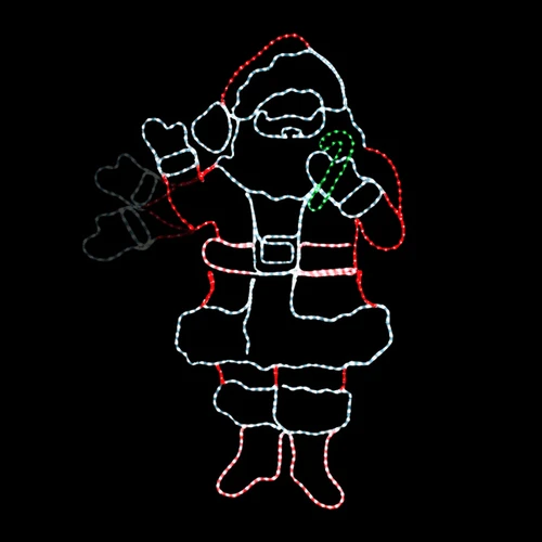 LED Animated Waving 6-foot Santa motif is the perfect addition to your Christmas decorations this year! This jolly Saint Nicholas decoration makes a waving motion that is created by alternating 3 lighted hand positions. Mount with a pole or vertical support stakes and plug into 110/120 volt power source to bring your Santa to life. Can be used indoors or outdoors.