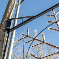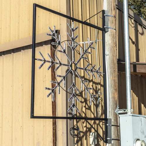 Are you wanting to mount your snowflake or other motifs to a pole mount on the side of a building, home or even an actual pole in your yard? Then this is what you need. This pole mount is Black Aluminum heavy duty and has adjustable hose clamps connected to it. There are pre-drilled holes for easy installation. This is great for Framed motifs only.