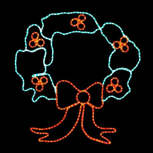 Wanting a creative way to have a wreath outside that everyone can see! Then this is the perfect solution to what you are wanting this holiday season. 44 inch Green and Red Rope light Christmas Wreath. This lighted motif will make sure all your neighbors, family, and friends can see from a distance. Add this to your other Christmas decorations and make the statement you want. With its all-weather frame can handle all weather conditions and the rope lights are UV protected. Includes a hanging ring for easy installation on wherever you decide to put your wreath.