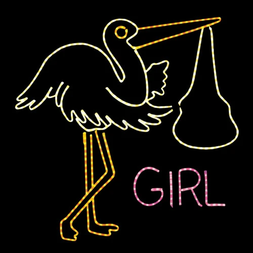 Rope Light Stork Baby Girl Birth Announcement Motif – Lighted Silhouette – Multi-Color – 48 Inch